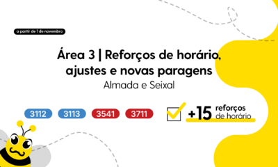 Almada e Seixal: 15 reforços de horário, ajustes de percurso e novas paragens a partir de novembro