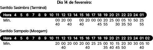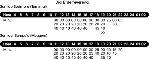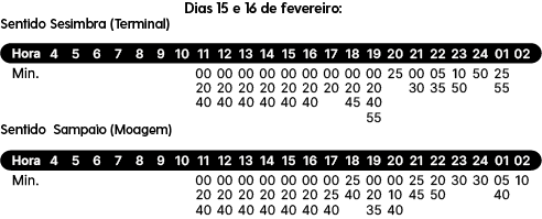 Todas as linhas da área 4 adotarão o horário de sábado do período escolar no dia 17 de fevereiro, terça-feira.