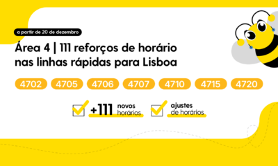Área 4 | 111 reforços de horário e ajustes nas linhas rápidas para Lisboa